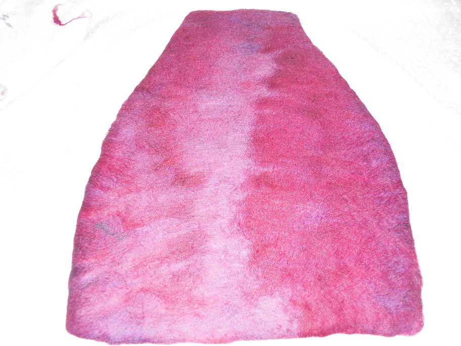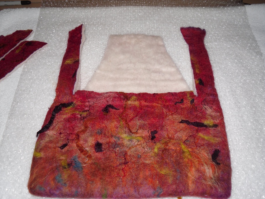 So now I didn’t much like it as a vessel, as I said the shape is wrong and I’ve already cut the top off and tried to get it in the shape I want but of course it just wanted to look more like a sack than anything else 🙂  and once again I didn’t take a pic of trying to get that shape, so  after much bravery I cut more and more and now I’ve ended up with what will be a small bag but Ill have to make a new handle and mess around with it way more than I wanted.  Having said  that I’m really enjoying playing around with it and we’ll just have to wait and see how it turns out. Don’t be shocked but this is what I have to play with now and I do have more of an idea of what the finished piece will look like but it’ll take me a couple more days to finished it off