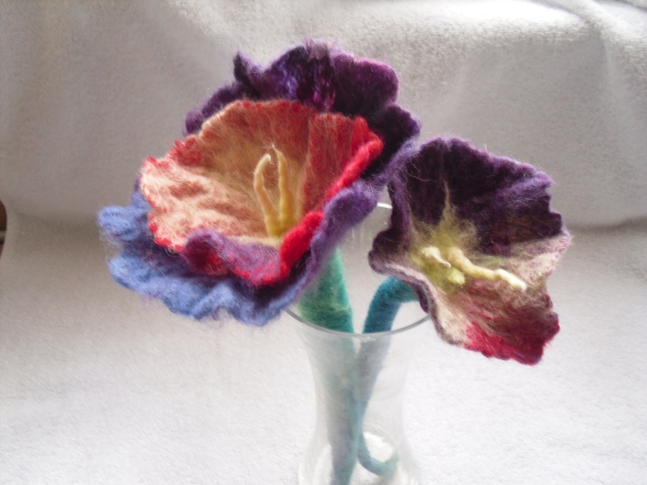 Hi Everyone,  I tried to get in some felting this week,  I didn’t get as much accomplished as I would have liked but at least I managed a few things,  We had such a beautiful sunny day the other day that I felt like felting some flowers 🙂