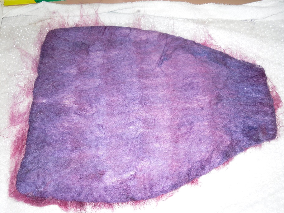 I wasn’t really sure how many layers to do so I started with 3 layers of white Romney, ( sorry I forgot to take a pic of that part)  then added a layer of purple BFL –merino