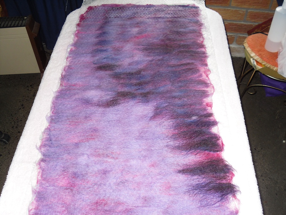So anyway, I layed out a piece of muslin first , then on top of that is a layer of merino and bfl
