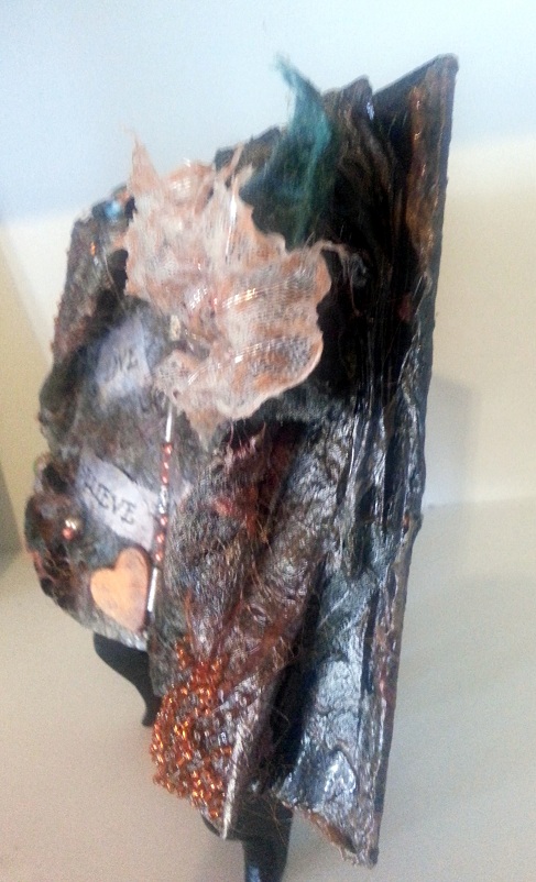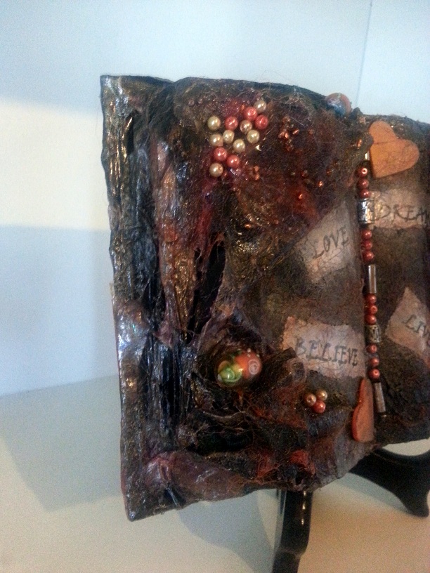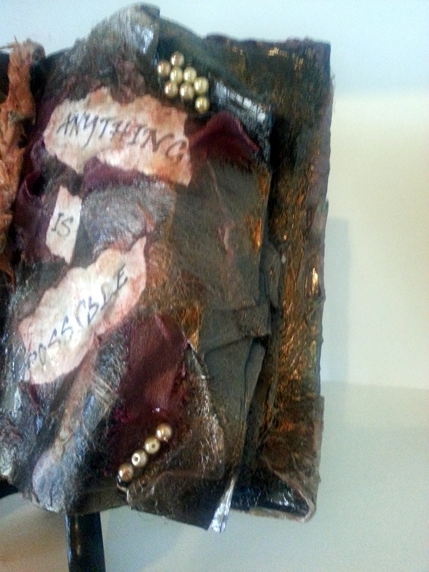 So having said that and as much as i love crafting i’ve never been into Altered books, with Ruths challenge i wanted something that i could do in small or large doses and include lots of mixed media, i.e fibres , silks ,beads ect, There are some beautiful Altered books out there but i havent found anything like what i’m doing so i can honestly say these are coming from my head, good or bad lol And about 20 years ago i used to make something similar to these and sell them at a market stall, by the masses lol i thought i’d give them another go but add lots more of what i’m doing now into them. I had a stack of note books ready to make covers for and i’m turning them into my little motivational altered books, yes they are a bit different but i’m having a great time.