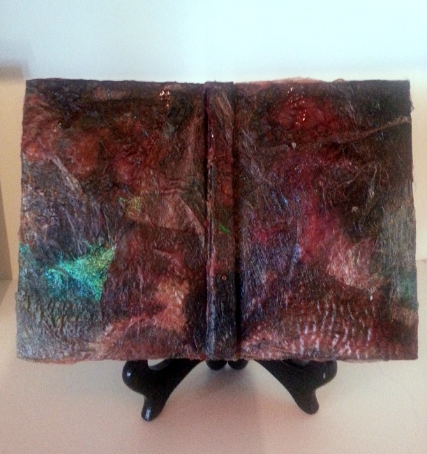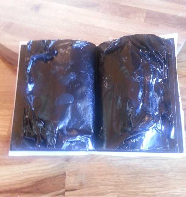 Silk Paper back, in hindsight i shouldnt have used the silk paper on the back as your not going to be able to see it much unless you pick up the book, but i really like how the silk came out hardened.