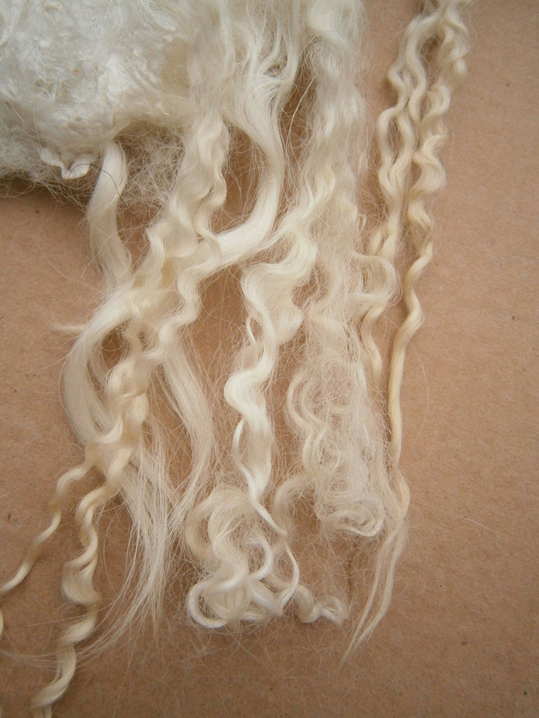 The wool locks all kept their shape really well and none of them tangled together. The Angora, Wensleydale and Teeswater locks in this next photo show how nicely they turned out.