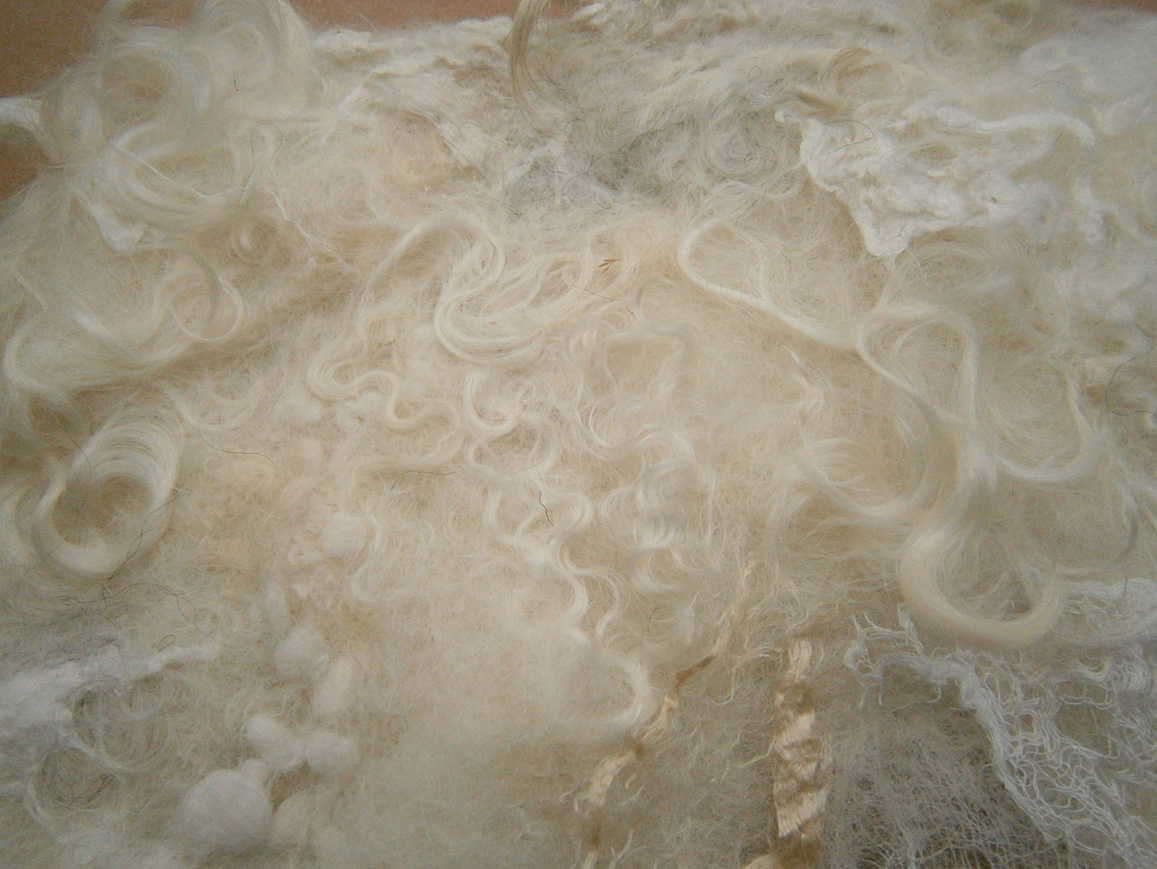 I also used Mohair, wool nepps, raw Gotland, Teeswater and Wensleydale locks, and embellishment fibres soybean top and silk noil.