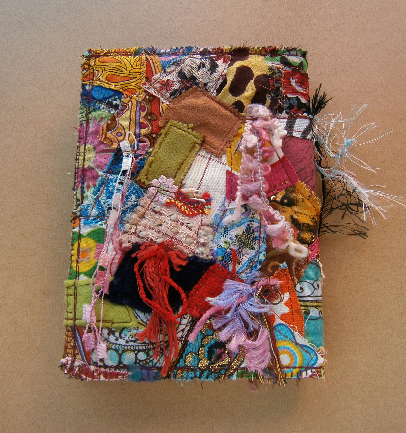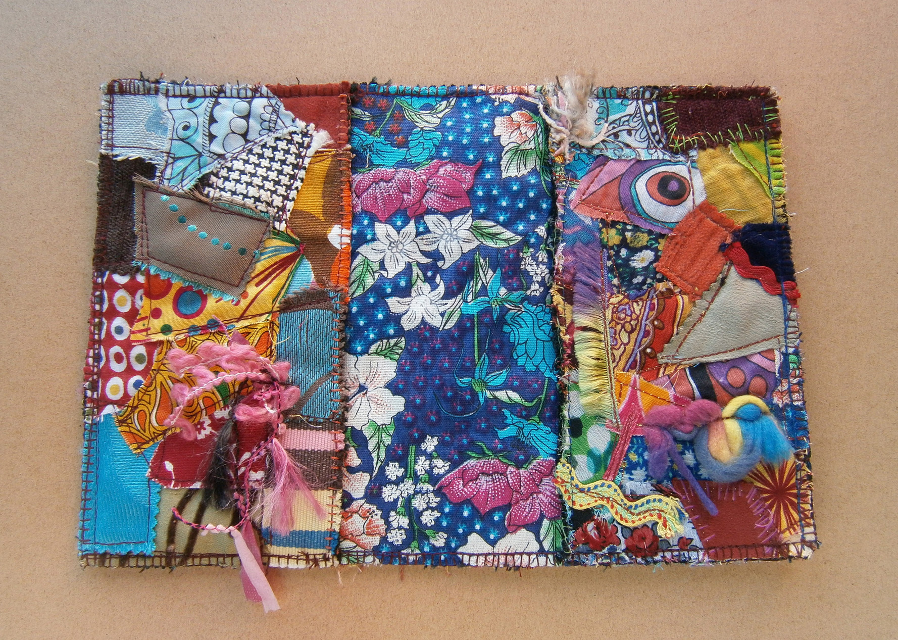 I finished another fabric collage notebook cover last week. This is a small A6 one. This is the front: