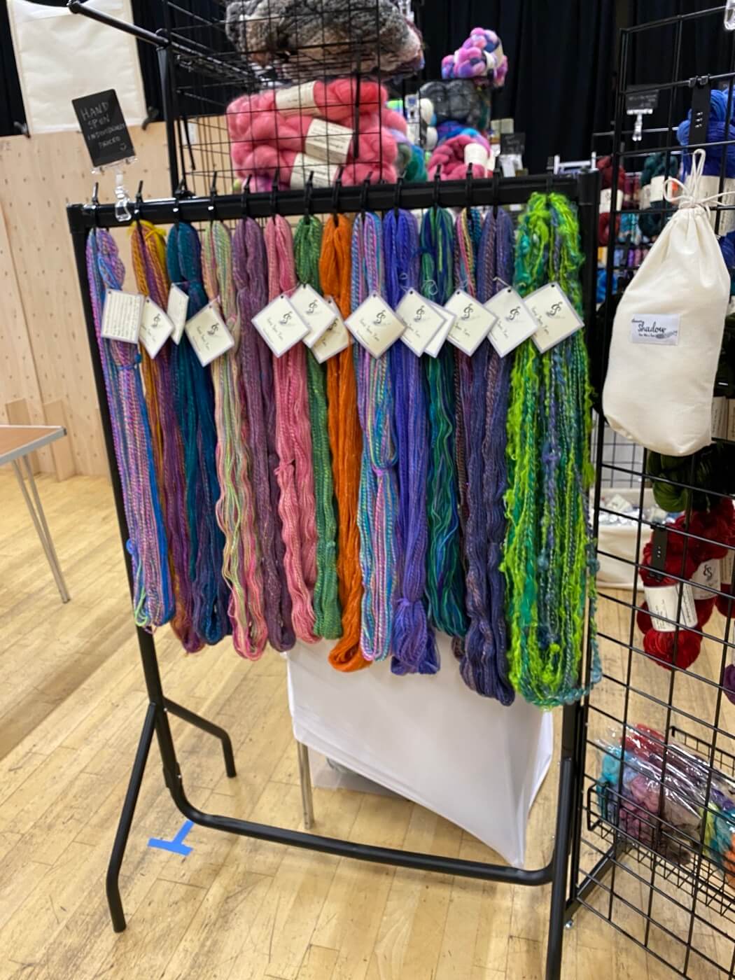 Hand Spun rack-eleanor-shadow Published June 11, 2024 at 1050 × 1400 in Becoming an in-person vendor again after 7 years ← Previous / My rack of hand spun yarns!