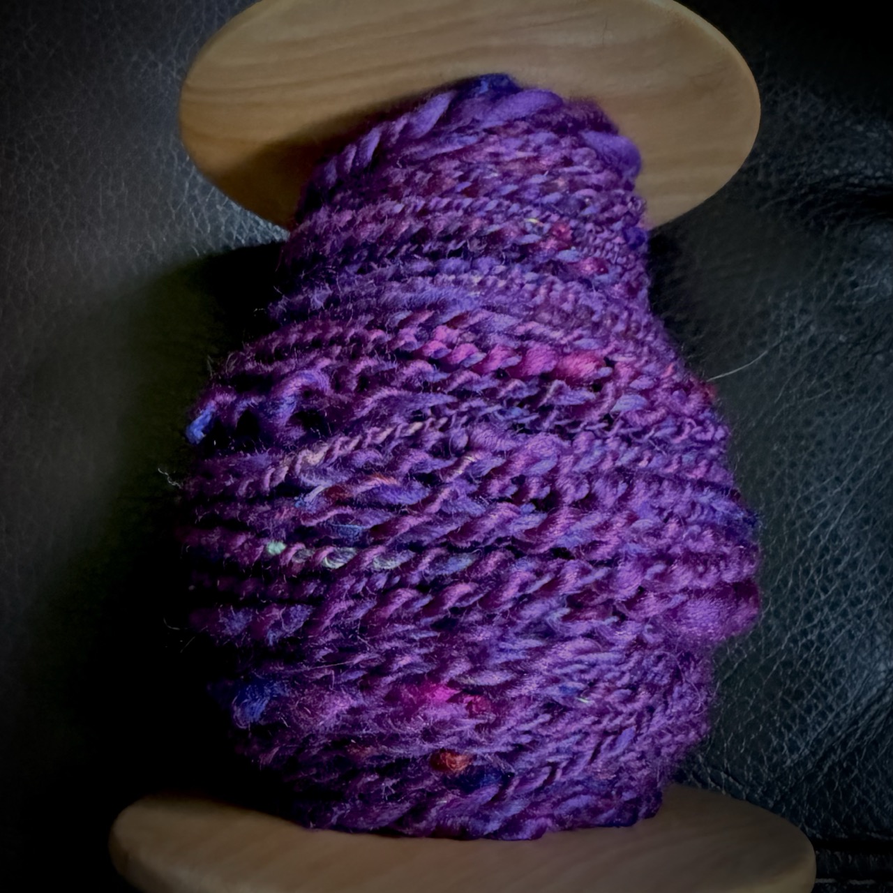 IMG_0154 Large Published May 27, 2025 at 1280 × 1280 in My Wheels Keep Spinning ← Previous / Next → This is the first plying of the Inglenook Fibers.