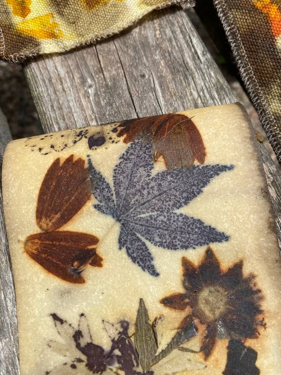 eco-printing-detail-3-eleanor-shadow Published July 29, 2025 at 900 × 1200 in My first foray into plant print screening ← Previous / Next → Detail of someone else’s strip, love the dark hues