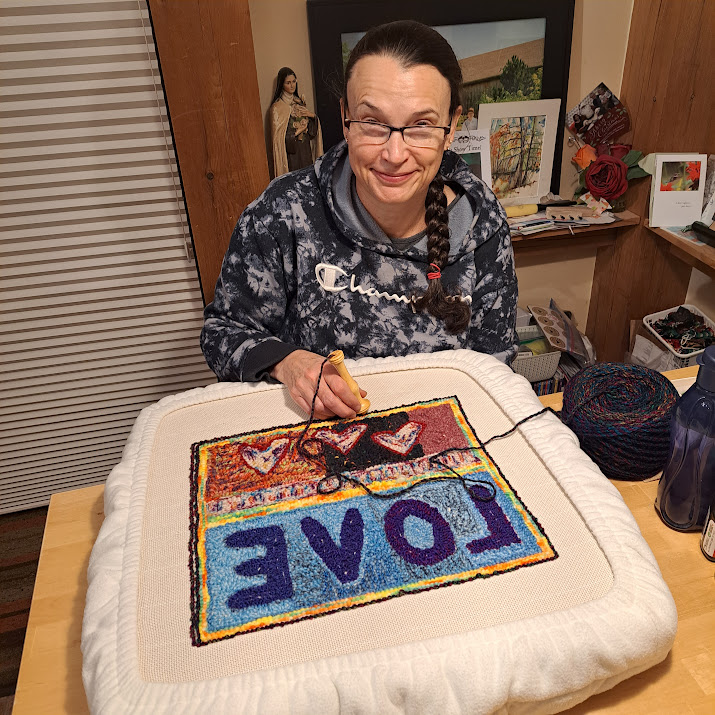 Love1 Published January 10, 2026 at 715 × 715 in Punch needle tree and coasters / Next → Carlene using her punch needle Carlene using her punch needle
