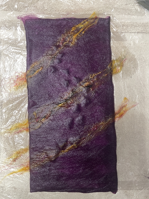 04 lantern class sample outside sari silk wet Published January 28, 2026 at 600 × 800 in Felted Lantern Cover Workshop. ← Previous / Next →