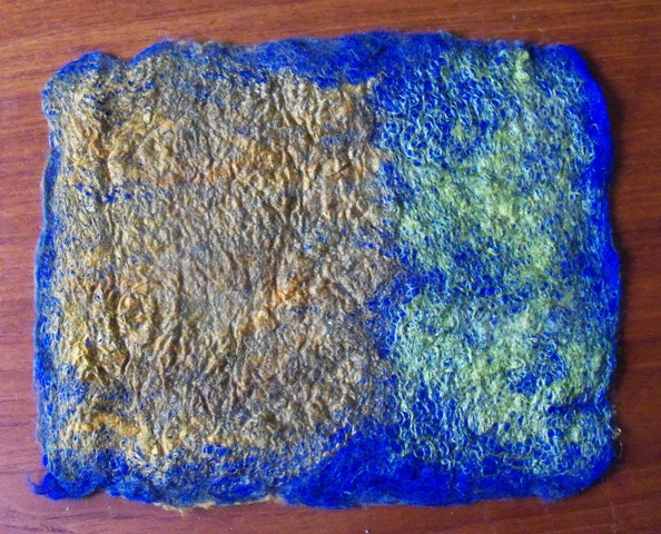 Anyway, I got my generic “English wool” from World of Wool, and yes, it was a bit coarser than Merino but still quite soft..in hindsight I may have been suspicious when it felt so soft, I do not know. Actually, that is a mix of different breeds’ wool, some that may actually be quite good for stiffer felt and some that are not, although they are coarser than Merino. Perfectly fine felting with it for all sorts of uses, but , a word to the wise, do not use it to make big boxes, eh.