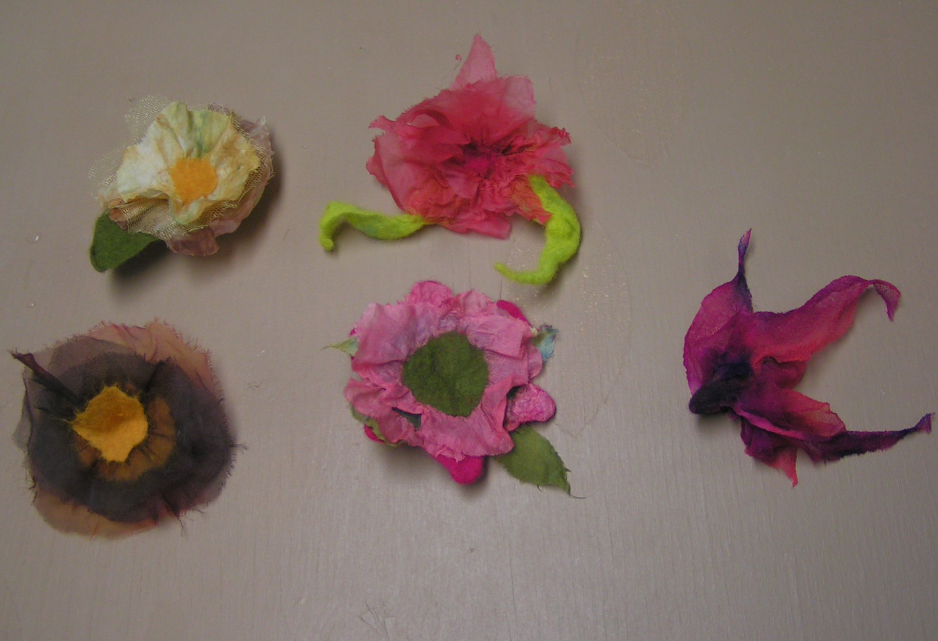 Nuno Felted Flowers Published November 12, 2011 at 1924 × 1314 in Nuno Felting Gallery ← Previous / Next → Nuno Felted Flowers Like this:Like Loading... Variety of silk petals “glued” with wool prefelt. Like this:Like Loading...