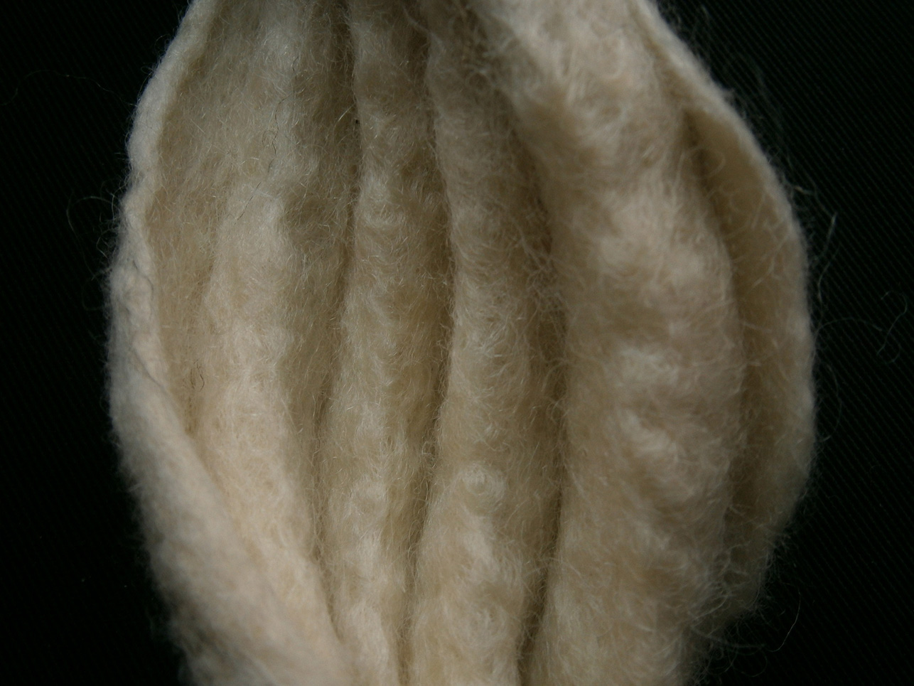 Ingeo is made from corn, it is soft and shiny and smells faintly of caramel 🙂 I decided to cover the whole piece with Ingeo as it has such a lovely sheen. This was another fibre which shone even in dim light. The effect after drying is gorgeous, Ingeo is such a nice silky fibre and went really well with the Oatmeal Bluefaced Leicester. I think this combination would make a lovely soft and shiny scarf.