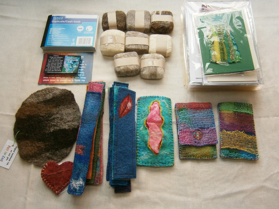 In this I had all my greetings cards, handmade felted soap, a receipt book, some business cards, a couple of mirror cases, a glasses case, ring pouch, coaster and lots of bookmarks.