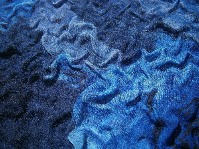 Some of the grey pieces are from a piece of felt I made for Karen’s Weather Challenge, using grey Gotland Locks for rolling clouds. This is the back: