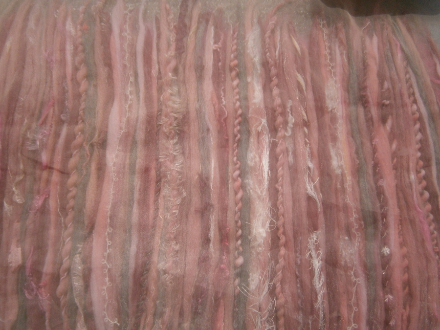 I like to spindle spin. I am slow at it, and it is just a fun, relaxing thing to do at a social or demonstration. I don’t knit or crochet. I have what seems to me to be a lot of small balls of 2-ply handspun. I know it’s not a lot really, I don’t suppose there is enough for even one sweater. I do use some in my felting. I never used a lot of it, but since I don’t really sell anymore, I use even less. I thought about trying some pictures using yarn. I could needlefelt it down a bit and then wet felt it. I have several large freezer bags of yarn. I thought it would be best to see what I have and sort it by colour.