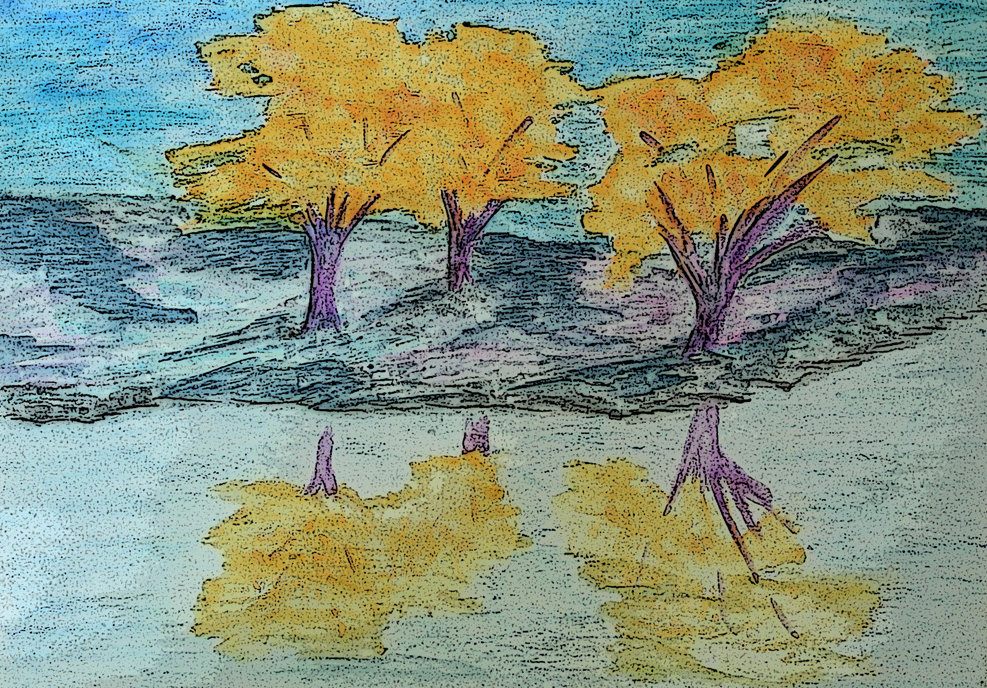 It summed up what I had been trying to achieve with the edited photos. The first one I tried had some of the bright colours, and the water ripples gave the ‘texurey’ look of the Fauvist style brush strokes, but I felt like I need to try a different photo. This is the one I started with: