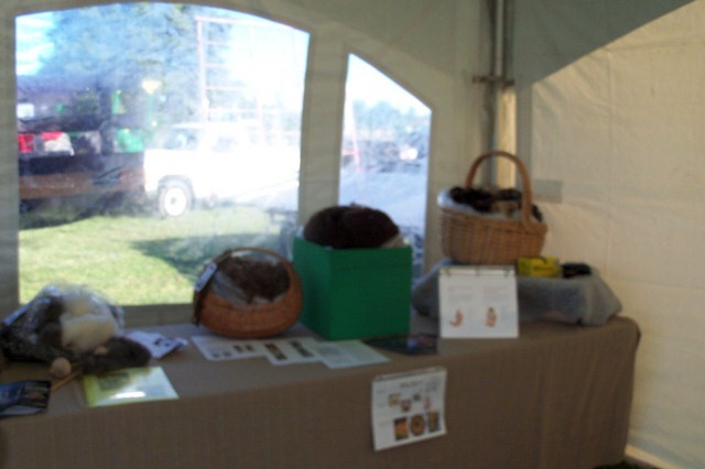 5) Another rainy demo, this time at the Richmond Fair. Spinning with the road bug in an Ikea under bed storage box to keep it off the wet ground. (trundle box is visible behind the chair under the table.)