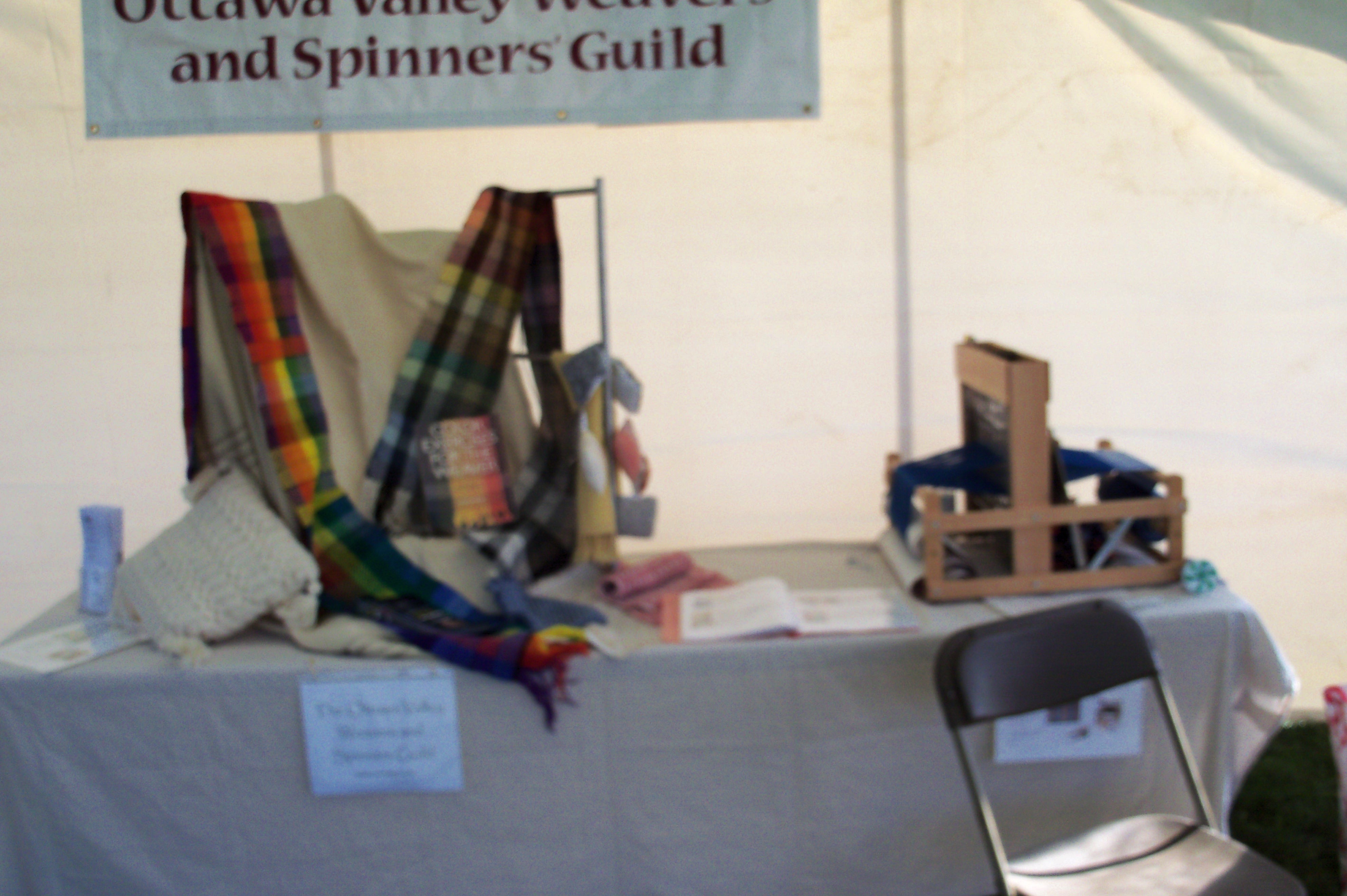 1) 2003 one of my Ashford Traditional wheels (on loan to another guild member) and my Lendrum folding upright wheel (it has a broken peg underneath that I can’t fix so wobbles from side to side as she spins. The wheel still spins well even with her drinking problem.)