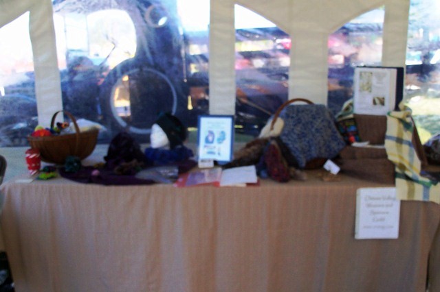 2) 2010 Spencerville Demo Ann has an Ashford Traveler. We are separated by one of my floor inkle looms. I am spinning on my hatbox wheel. (We were in an unheated, dirt-floor, arena. Not the heated building we were expecting.)