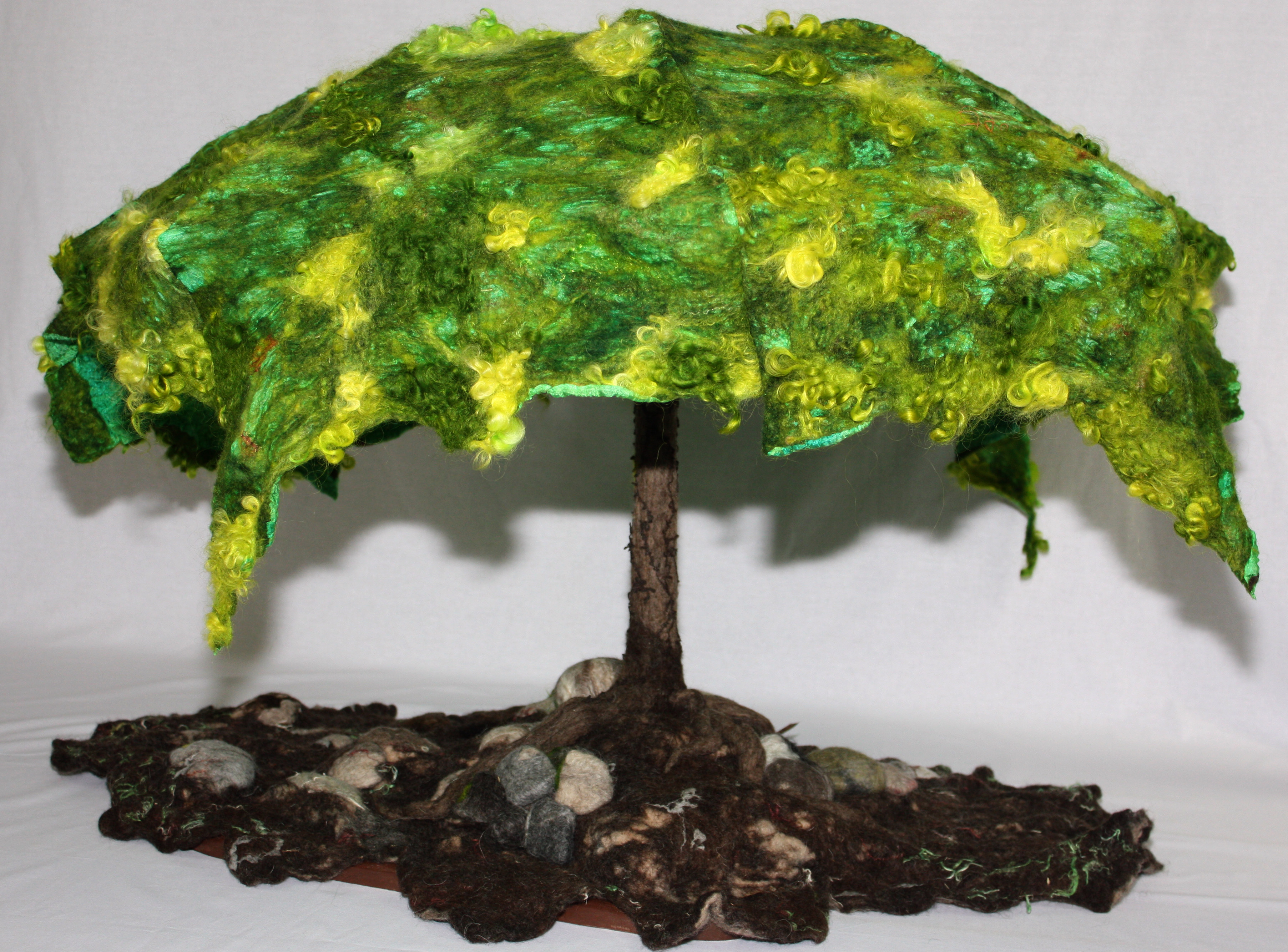 One of my other goals was to continue to build a fiber arts organization that I started called Tangled. The group had its first exhibition with the theme of Shelter in October at The Purple Pomegranate. For that exhibition, I made my umbrella tree pictured above. This was made by felting over an umbrella and recreating the top of the umbrella with nuno felt. I am thinking that I will enter this piece into a few more exhibitions in the coming year. The group is also planning an annual exhibition and perhaps some outdoor fiber art installations.